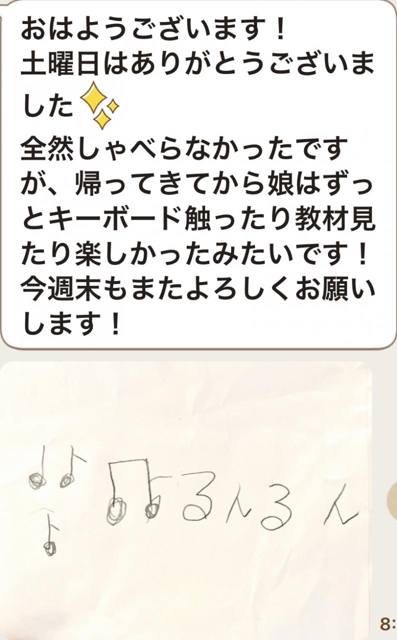 土曜日に初めてのピアノレッスンに来てくれた生徒さんのママから嬉しいメールが