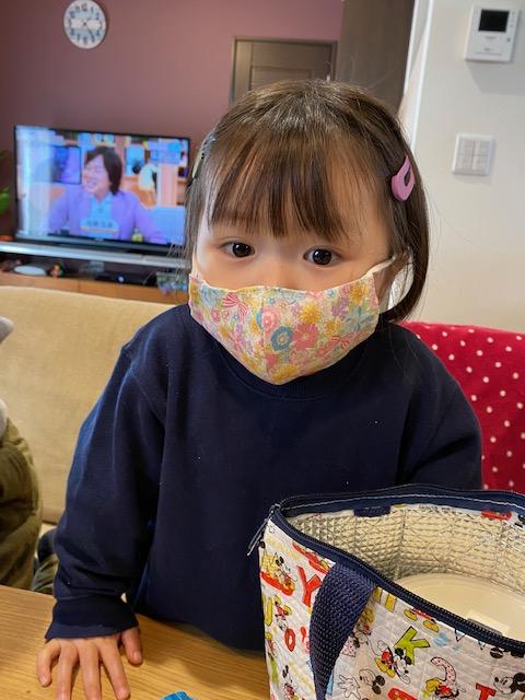 そして、手作りマスクを付けて