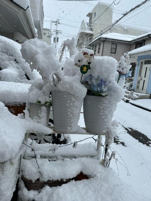 昨夜から降り始めた雪が積もってました。